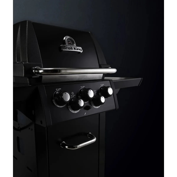собственный складГазовый гриль Broil King Royal 390 Shadow 824283 это мощное и стильное устройство для приготовления пищи на открытом воздухе, которое сочетает высокую производительность с удобством использования. Имеет три нержавеющие Dual-Tube™ горелки суммарной мощностью 8,8 кВт, которые обеспечивают равномерный и быстрый нагрев. Дополнительно есть боковая горелка мощностью 2,3 кВт для приготовления соусов и гарниров, а также поворотный вертел на 3,5 кВт для сочного и равномерно обжаренного мяса.